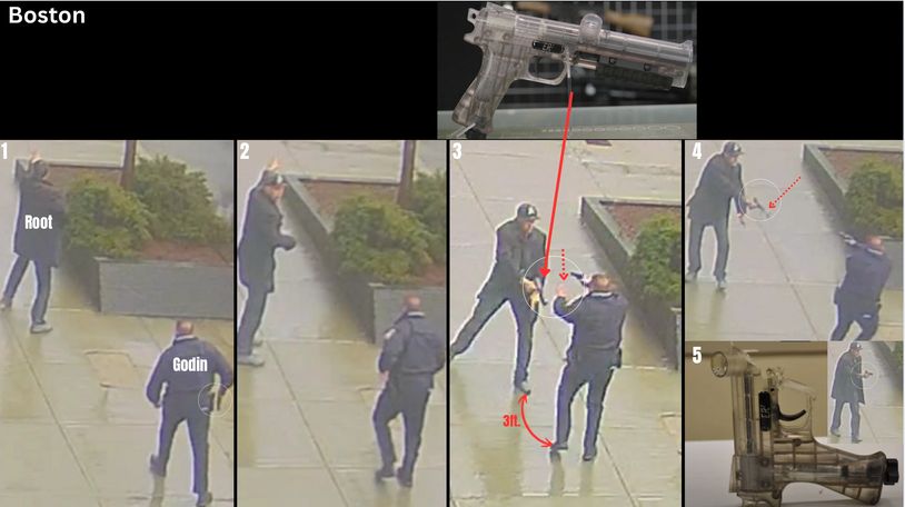 When Boston Police arrived, they opened fire within minutes, discharging 15 rounds. As the first officer approached, Juston—struggling to communicate due to his psychiatric disability—repeatedly shouted that he was with law enforcement, a known symptom of his mental health condition. With his firearm already drawn and without any attempt at de-escalation, the officer closed the distance while Juston’s back was turned, advancing to within 36 inches. When Juston turned and saw the gun pointed at him, he pulled out an oversized, clear plastic paintball marker from his waistband. The officer immediately fired, shattering it and leaving only the clear handle in Juston’s hand. Together, the two responding officers fired 15 rounds. One bullet ricocheted a significant distance and struck a hospital valet in the head.